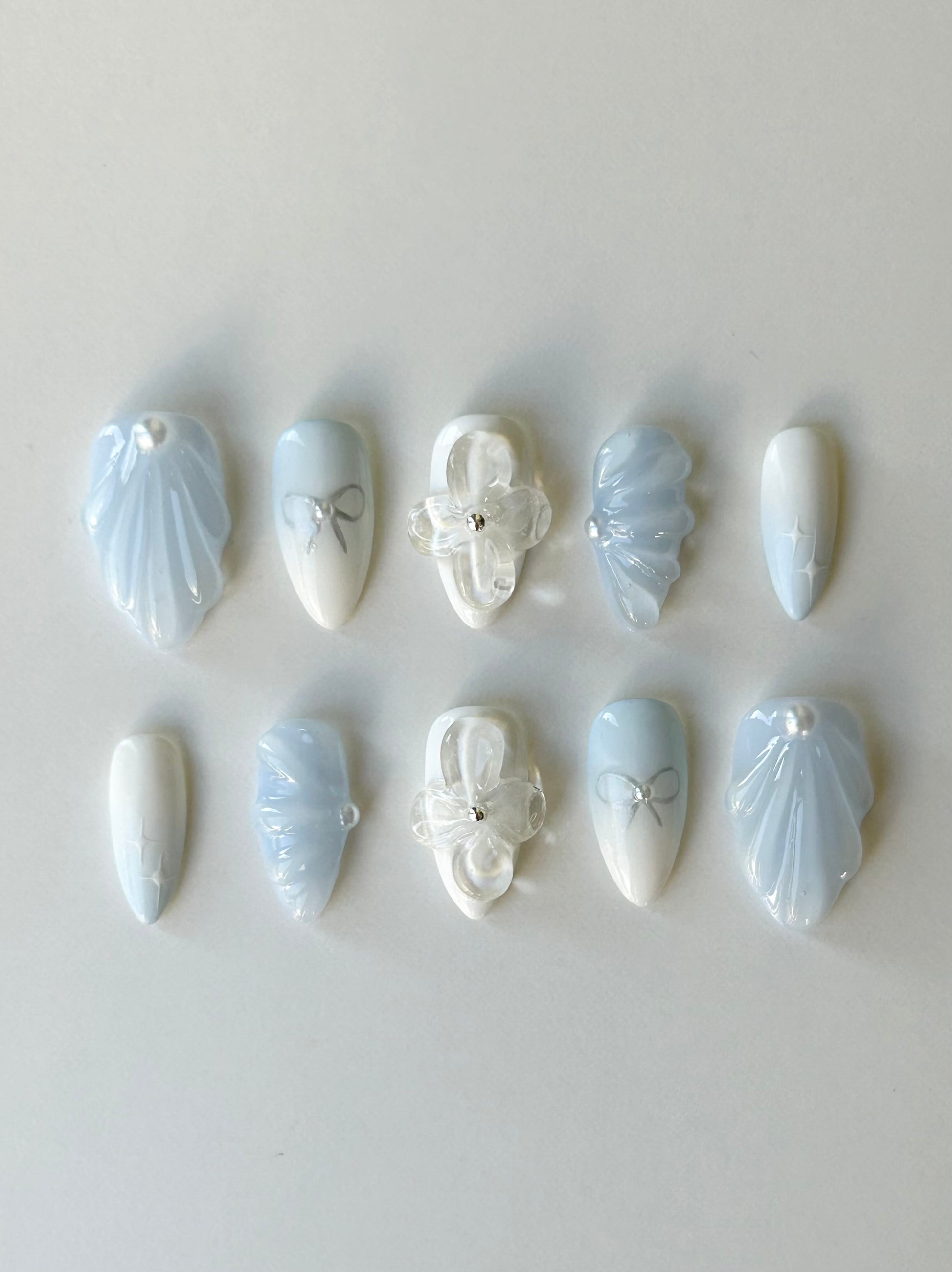 This set is a dreamy with a white base and soft blue accents that feel like a gentle winter breeze ⋆⁺₊❅.